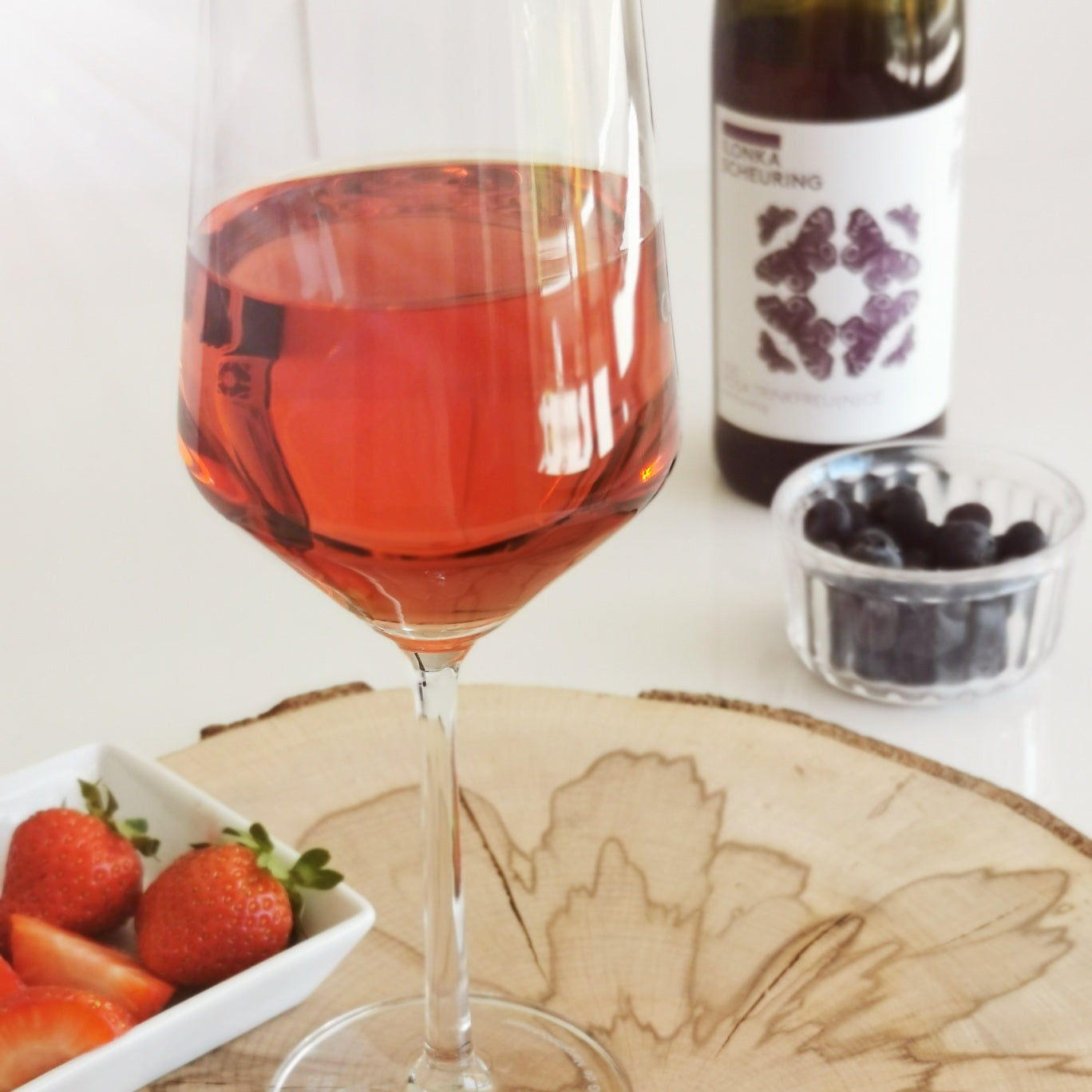 Fruchtig-rosa Rotling. Du kannst ihn pur trinken oder mit Früchten und Eiswürfeln zu einem leckeren Cocktail verfeinern.