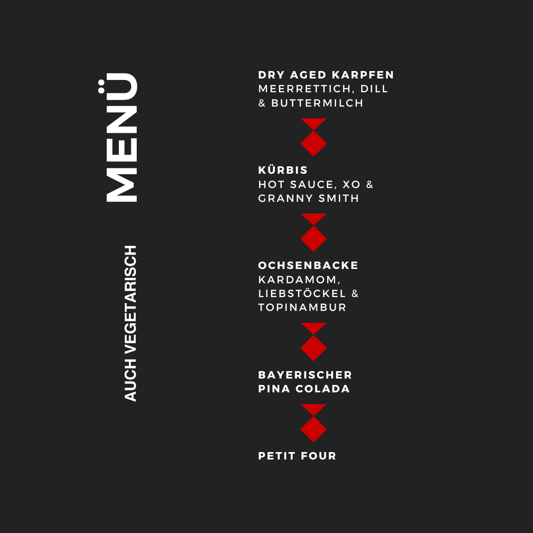 Vegetarisches Menü möglich. Bitte die Auswahl "4-Gänge-Menü // Vegetarisch " bei der Bestellung treffen.
